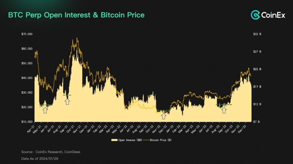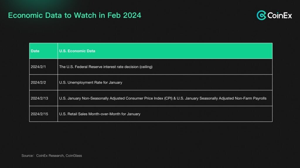 After the approval of the ETF, BTC did not experience a faster price surge. On the contrary, due to the speculative narrative around the BTC ETF, the price had been pushed from around $20,000 in August of the previous year to a peak of about $49,000 when the ETF was approved. When the ETF was actually approved, what we witnessed was more of a “Sale-the-News” phenomenon and short-term profit-taking. BTC has entered a period of adjustment, which is expected to continue into February. However, because of favorable market sentiment, the price correction may not be significant, and there might be more of a range-bound movement.